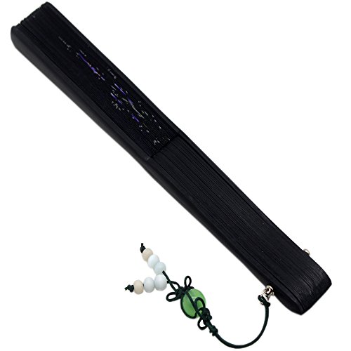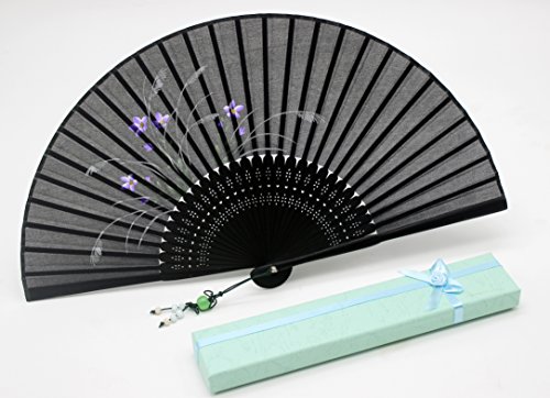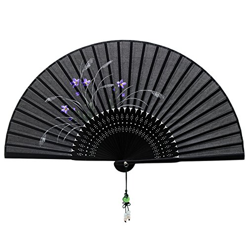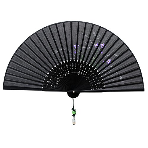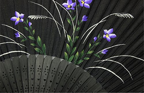 Alay&me Japanese Silk Handheld Fan Hand Fan Black with Flower Handheld Fan