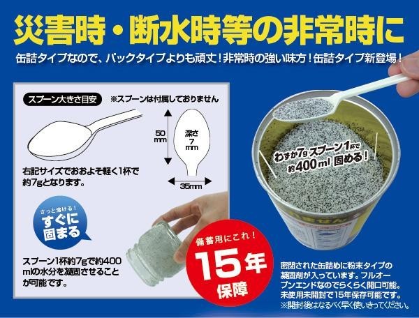 | サッと使える粉末タイプ。アウトドアや非常時に大活躍!! |