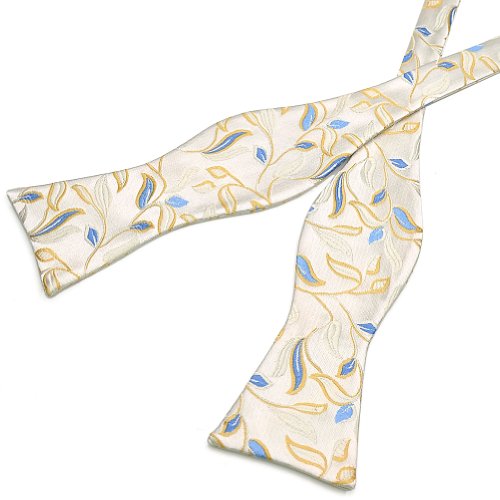 - Title : Pensee Mens Self Bow Tie Beige & Yellow & Blue Floral Jacquard Woven Silk Bow Ties