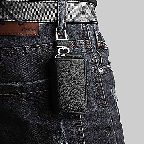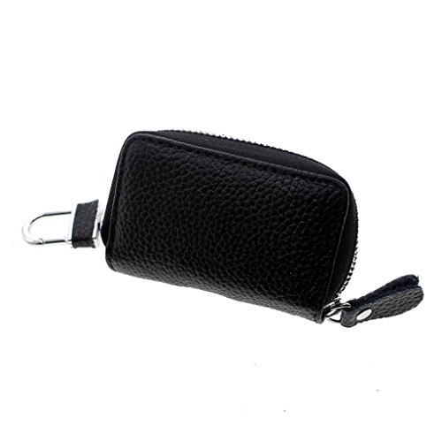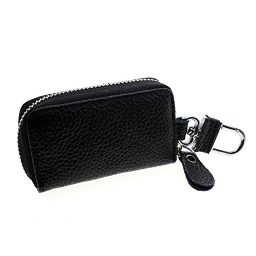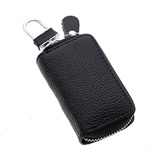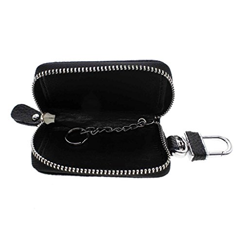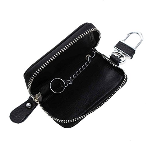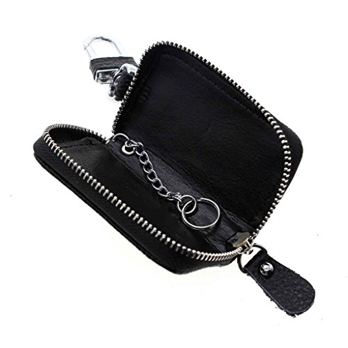 -. Feature : Color: Black / Size: approx. 8*4.5*2cm / Material: Genuine Leather+ Metal / Open: Zipper / Package includes: 1x Car Key Chain Pocket