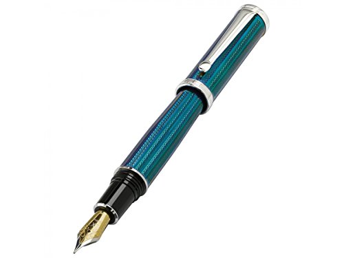 -. Feature : Weighty and balanced pen. Limited edition. Each pen is individually numbered with the year of production engraved / To post the cap on the barrel's end, one must firmly press down on top of cap until it clicks / Diameter - 14 mm; Length Posted - 156 mm; Length Capped - 142 mm; Weight - 1.5 ounces/43 grams. Unique Azure Blue Metallic color. Diamond-cut engraved / Ink refill is standard European size and interchangeable with other fountain ink refills including, Xezo, Visconti, montblanc, rotring, and waterman / Supplied with gift box, fountain cloth, 4 ink cartridges, ink converter, certificate, and 3-year warranty card. German-made iridium point medium width gold plated nib