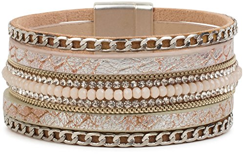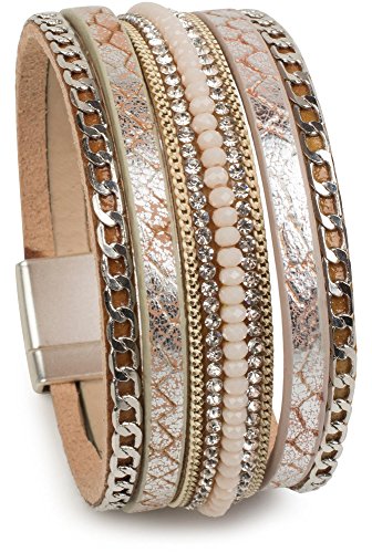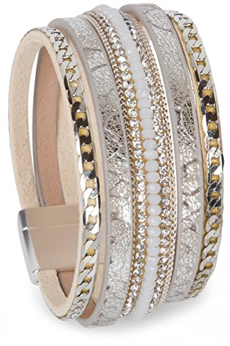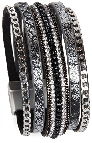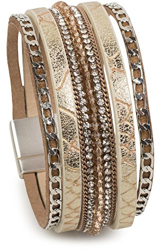 -. Feature : funkelnde Glitzersteine und glänzende Ketten / Magnet Verschluss für sicheren Halt / weicher, edler Armschmuck zum einmaligen umwickeln / Länge x Breite: ca. 20 x 3,2 cm / Antiker Print und geschliffene Glaskristalle