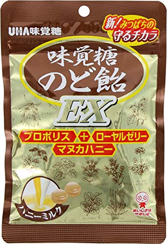 原材料:水飴、砂糖、粉乳、はちみつ、生クリーム、植物油脂、ドロマイト、ローヤルゼリー、ハーブエキス、キキョウエキス、プロポリス抽出物含有食品、カンゾウ末、デキストリン、甘味料(ソルビトール、アセスルファムK、スクラロース)、香料、乳化剤、調味料(アミノ酸)、酸味料、(原材料の一部に卵、大豆を含む)