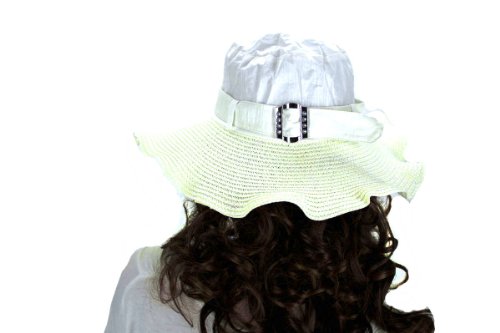 -. Title : Noonies Boutique Cream Flutter Trim Straw Hat 15'' w/ 4'' Brim