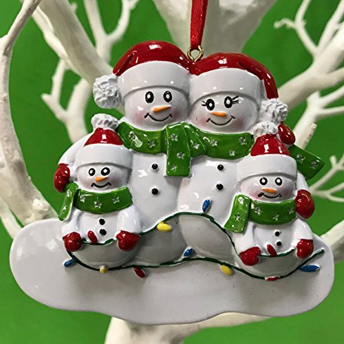 Snowman Family of 4 Personalize Christmas Ornament,Personalized Ornaments,Free Pen with Gifts Box Provided