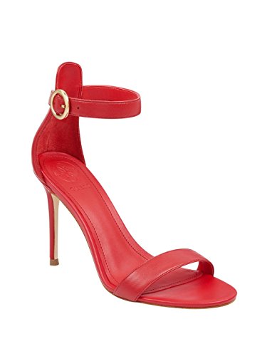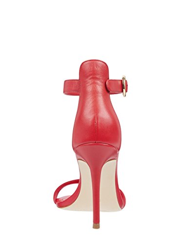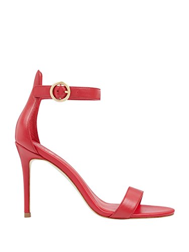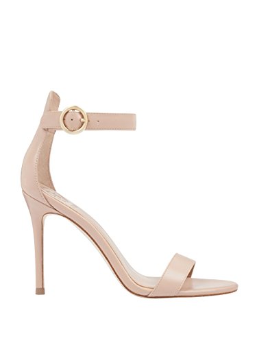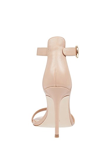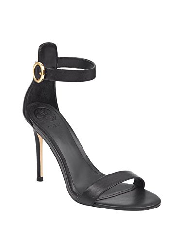 Product DescriptionA sleek pair of faux-leather stiletto heels featuring an open-toe design and buckled ankle strap.0