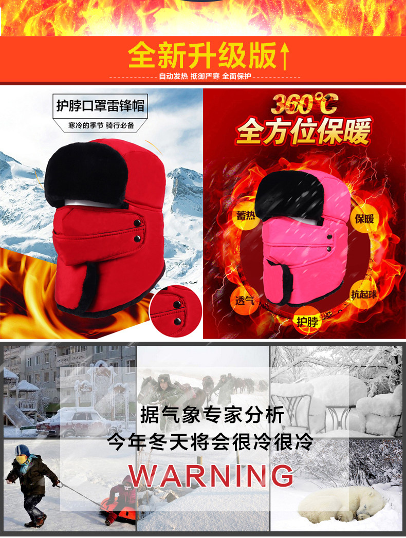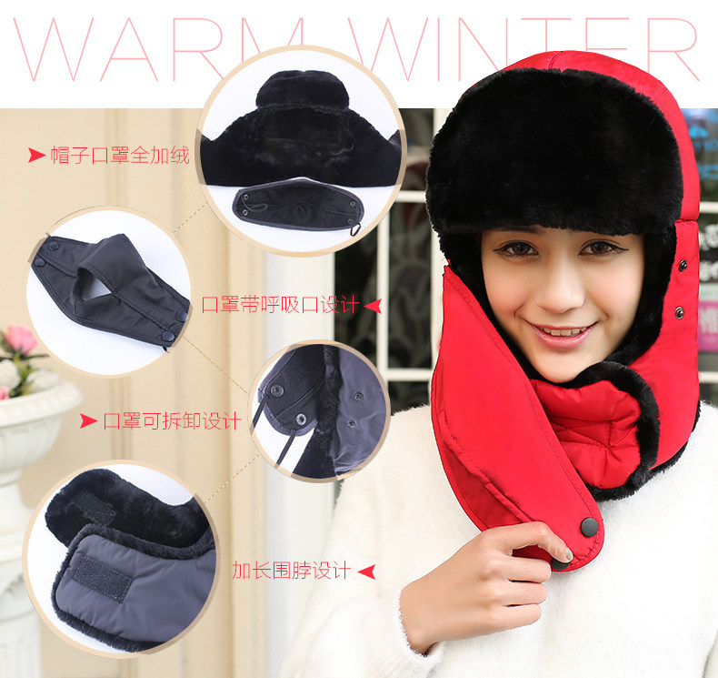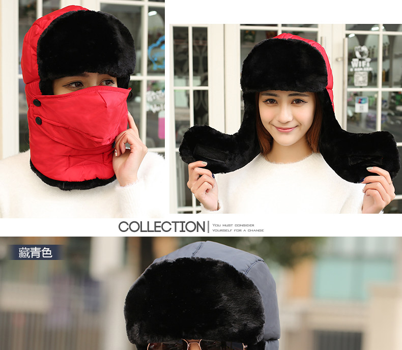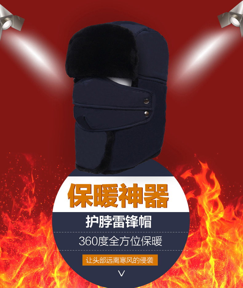 Full velvet inside thick warm wind masks couple Lei Feng cap