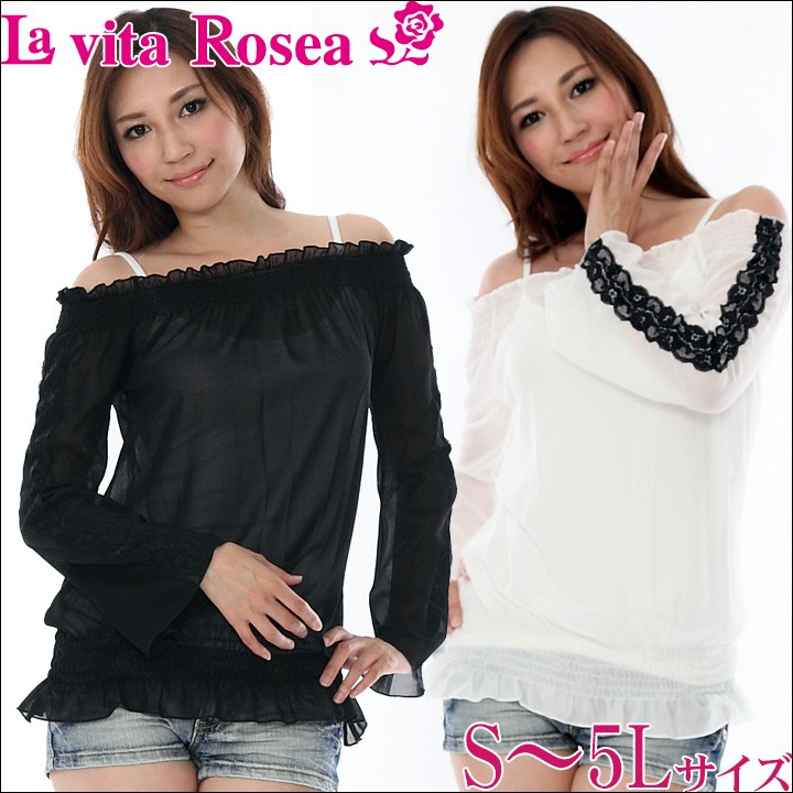 オフショルシフォントップス(PE) 大きいサイズ 春 セクシー レディース ギャル服 ギャル 大人 13号 15号 17号 19号 LL 2L 3L 4L 5L 6L 6L
