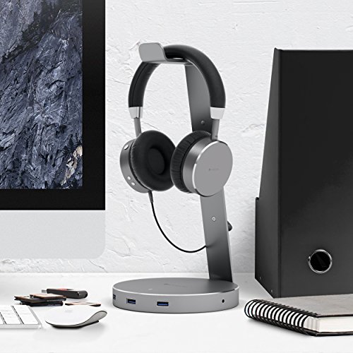 Title : Satechi Aluminum USB Headphone Stand Holder with Three USB 3.0 Ports and 3.5mm AUX port - Suitable For All Headphone Sizes (Space Gray)