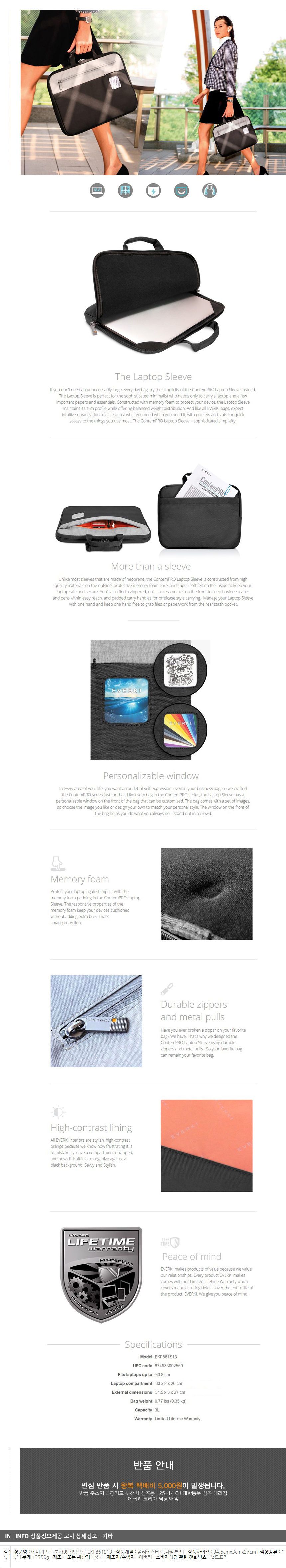 <상품명 : ZP8 에버키 노트북가방 컨템프로 EKF861S13(블랙)>