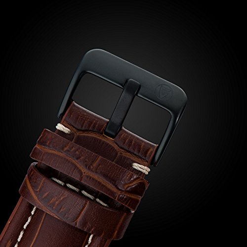 Dies beginnt mit massivem Edelstahl für Gehäuse sowie Schließe und endet bei feinstem Echt-Leder für das Armband.
