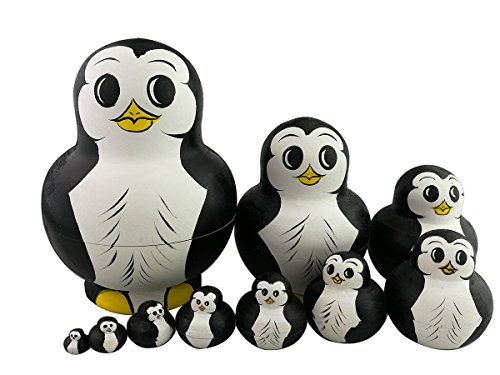 -. Feature : Handmade cute funny wooden russian nesting doll / Contains 10 dolls. The largest penguin is 5.9" in height / Kid's toy and wonderful decoration for house / Beautiful traditional painting. Animal design. / Ideal for a christmas or birthday holiday gift