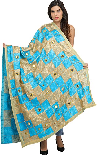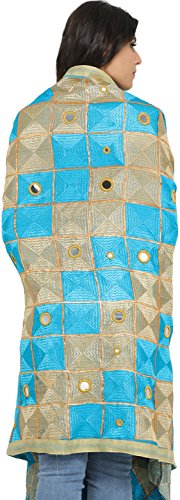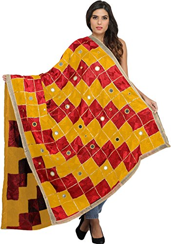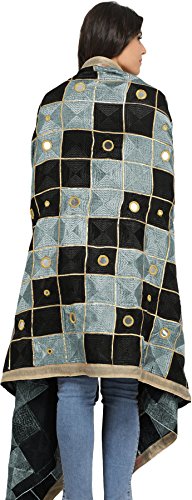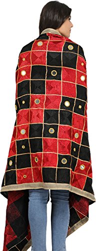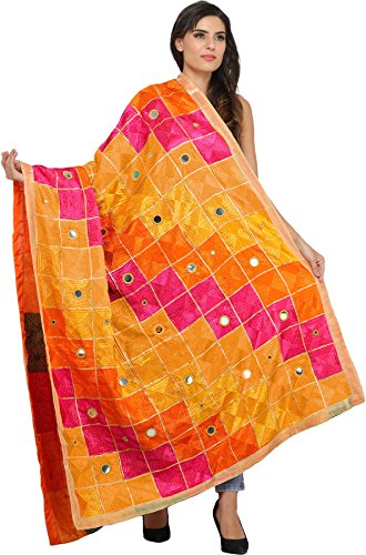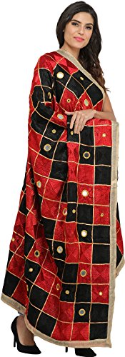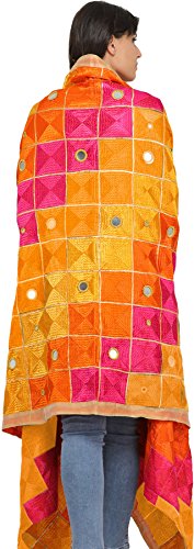 Exotic India Phulkari Dupatta from Punjab with Embroide