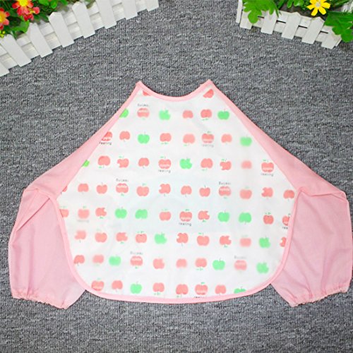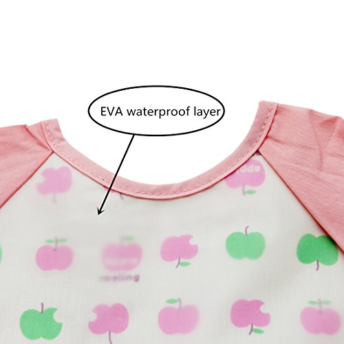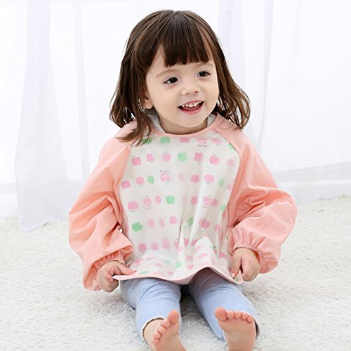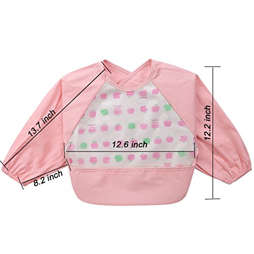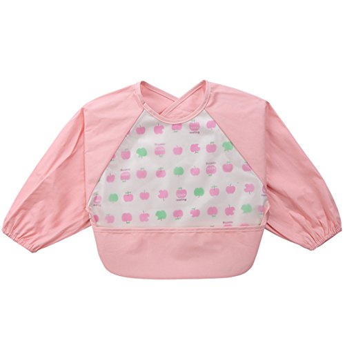 NinkyNonk Toddler Waterproof Sleeved Bibs,Baby Eating and Painting Smock,6-24 Months (pink apple)