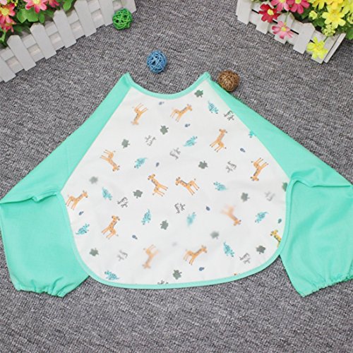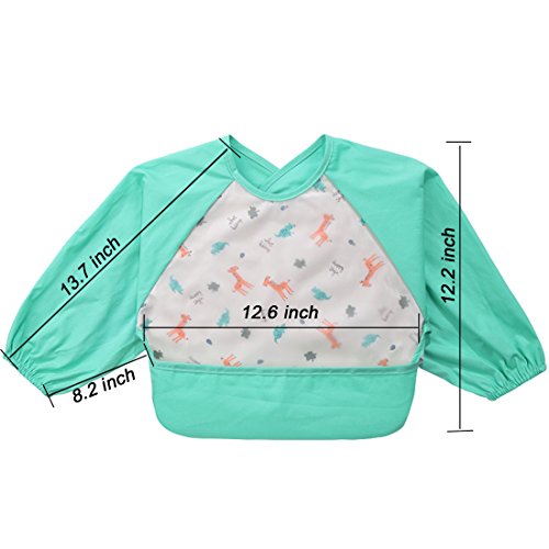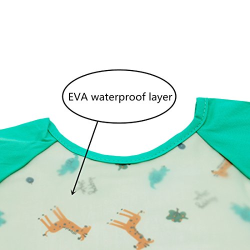 NinkyNonk Toddler Waterproof Sleeved Bibs,Baby Eating and Painting Smock,6-24 Months (green deer)