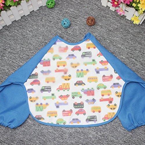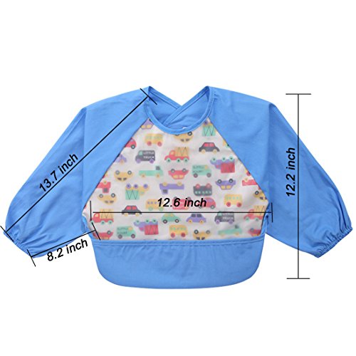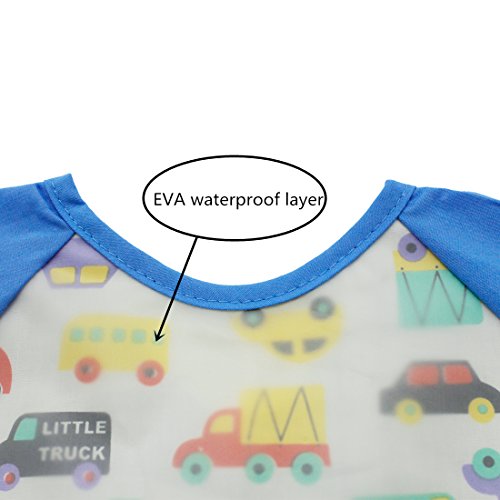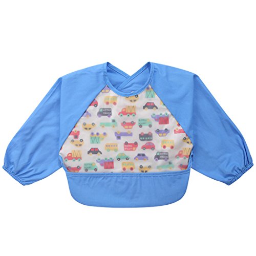 NinkyNonk Toddler Waterproof Sleeved Bibs,Baby Eating and Painting Smock,6-24 Months (blue car)