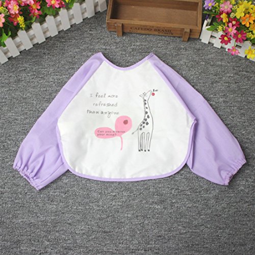NinkyNonk Toddler Waterproof Sleeved Bibs,Baby Eating and Painting Smock,6-24 Months (purple giraffe)