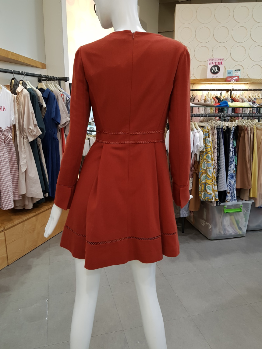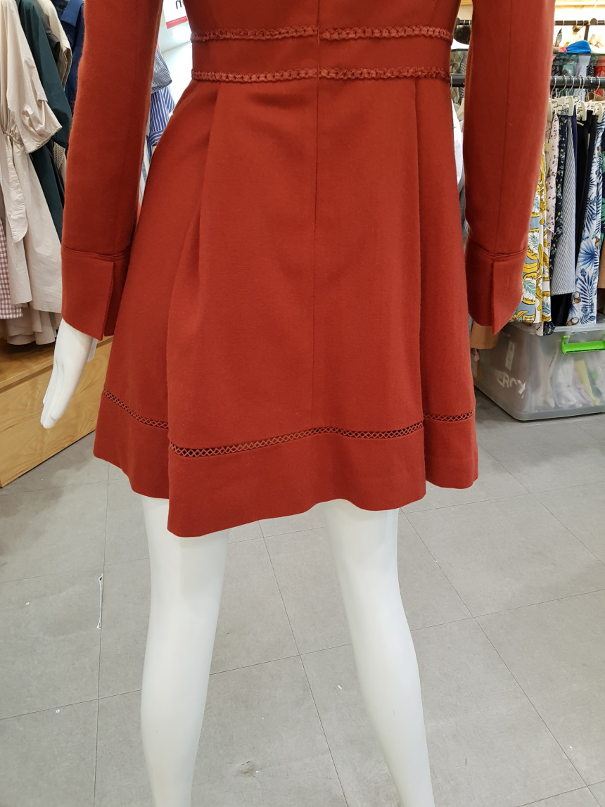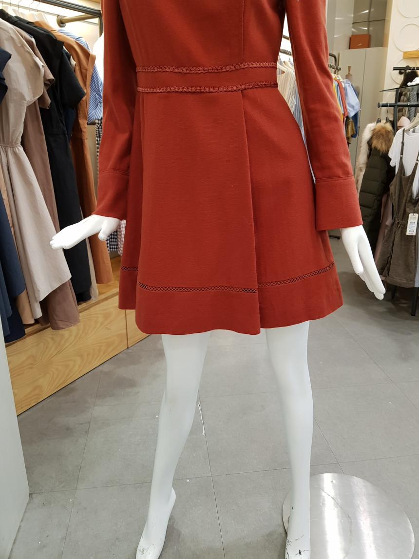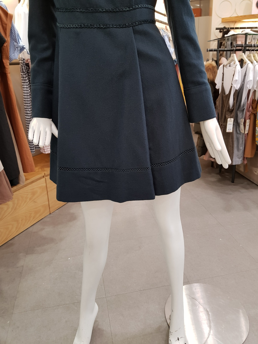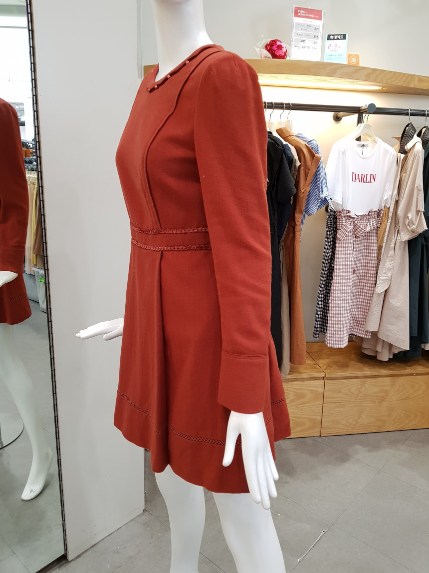 넥 라인을 비즈 장식으로 포인트를 준 모직 원피스에요^^