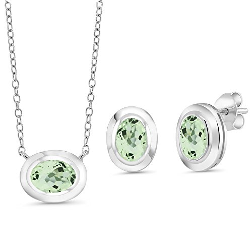 -. Binding : Jewelry -. Brand : Gem Stone King -. Color : Green -. Department : womens -. Feature : SIMPLY SOPHISTICATED - This delicate pendant will immediately put you in the spot light. Crafted with high quality stones this pendant is the perfect accessory for any ensemble on any occasion / UNIQUELY DESIGNED- With simplicity in mind this pendant is the perfect item for gift givers who want to show they care. Perfect for birthdays, weddings, mother day or just those moments when you want to get something for that "Someone Special". / GORGEOUS- and Sparkly these unique earrings are perfect for any outfit! Pair them with date night and work week looks you cannot go wrong! Beautifully crafted these earrings are the perfect gift for any occasion and make perfect stocking stuffers for the holidays. They're truly a fashion staple and belong in every jewelry collection. / UNIQUE- The design of these earrings will ensure that you stand out effortlessly. Gift these beautiful earrings to yourself or someone you love. Made in the USA Gem Stone King products are always made with the highest quality elements and standards. / Gemstones may have been treated to improve their appearance or durability and may require special care. -. Model : VIV-0128-OV-AM-GR-SS -. NumberOfItems : 1 -. PackageQuantity : 1 -. ProductGroup : Jewelry -. ProductTypeName : FINENECKLACEBRACELETANKLET -. Title : 2.25 Ct Oval Green Amethyst 925 Sterling Silver Pendant Earrings Set With Chain