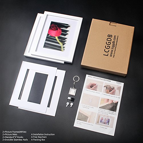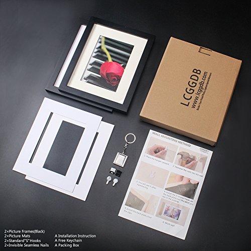 -. Title : Picture Frame 4x6,5x7,8x10,11x14 Black/White, Wood Photo Frame 4-side Painted with Modelling Effect Mat,Table Top & Wall Mounting Available - Hanging Hardware Included