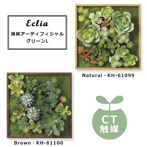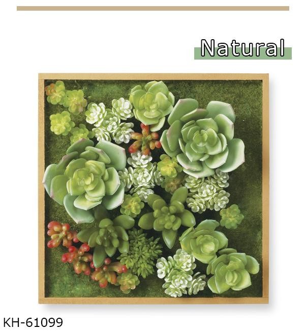| 様々な多肉植物を寄せ植えした、フレームタイプの消臭アーティフィシャルグリーン。NaturalとBrownの2種類からお選び頂けます♪ |