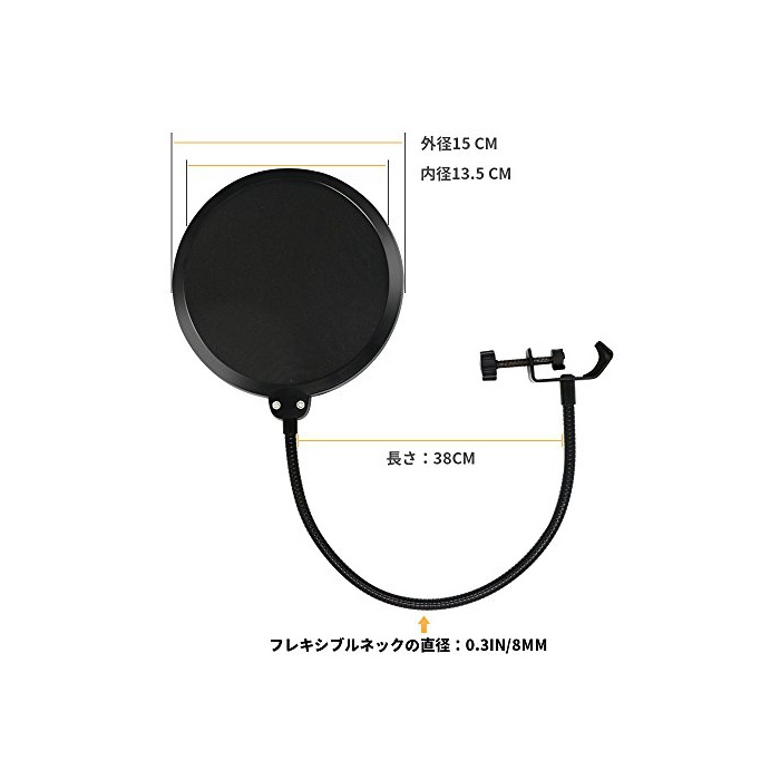 「상품 용도」보컬 레코딩시의 POP음을 제거하여 클리어인 녹음을 하기 위한 아이템,POP 필터입니다.※POP 블로커,POP 가이드 나 팝스 클린 다마다 불리고 있습니다.필터 부분으로 섬유제 넷을 2 매사용.보다 델리케이트에 클리어인 녹음을 가능하게 합니다.특히 콘덴서 마이크를 쓸 때에는 필수품입니다.goose 부분은 (flexible)플렉서블 넥 이기 때문에,자유자재로 형태를 바뀌어 고정 할 수가 있습니다.택녹,레코딩,송신 용도,여러가지 씬으로 활약 할 수 있는 아이템입니다.