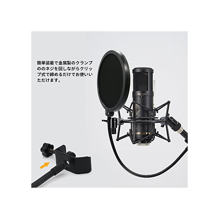 「간단 장착」POP 필터를 마이크 스탠드 등에의 설치는,금속제의 클램프로의 나사를 돌리기면서 클립식에 조르는(매는) 것 뿐(만,만큼)으로 사용하실 수 있습니다.그리고,나사의 부분은 마이크 스탠드의 굵음 에 맞게 하고, 사이즈의 조절 수 있고강한 적용성입니다.부드러운 넥 부분과 섬세한 필터와 합해,테이블 등 좁은 공간에 폭넓게 사네 하실 수 있습니다.