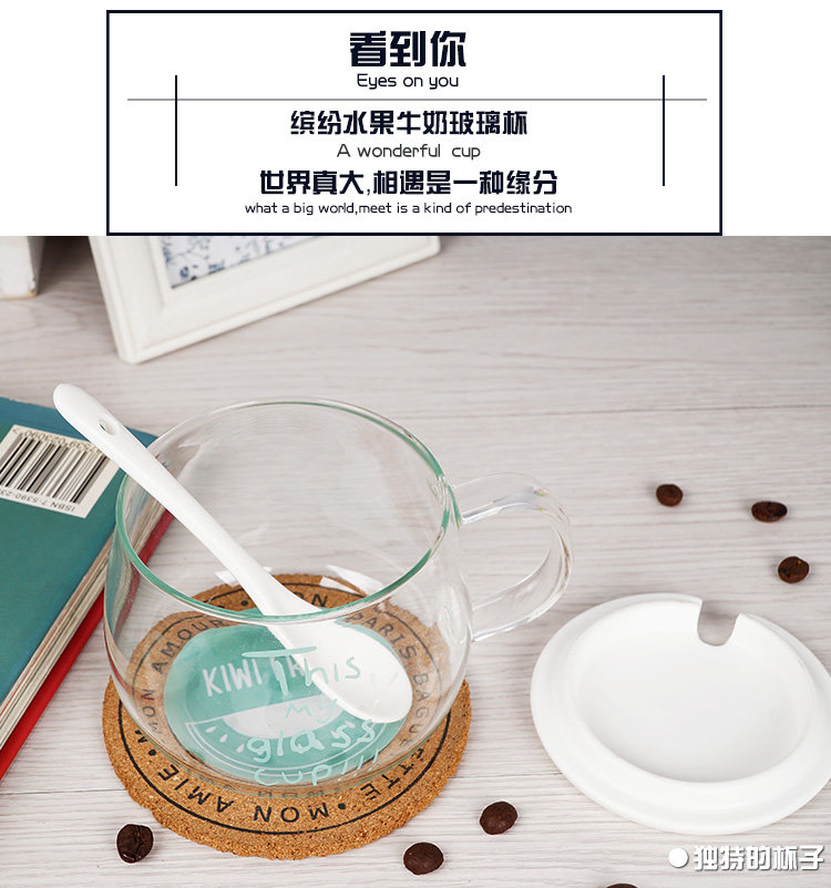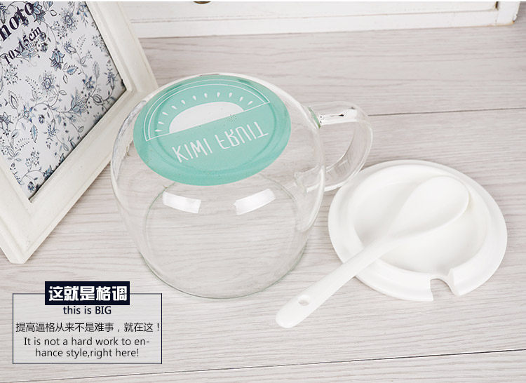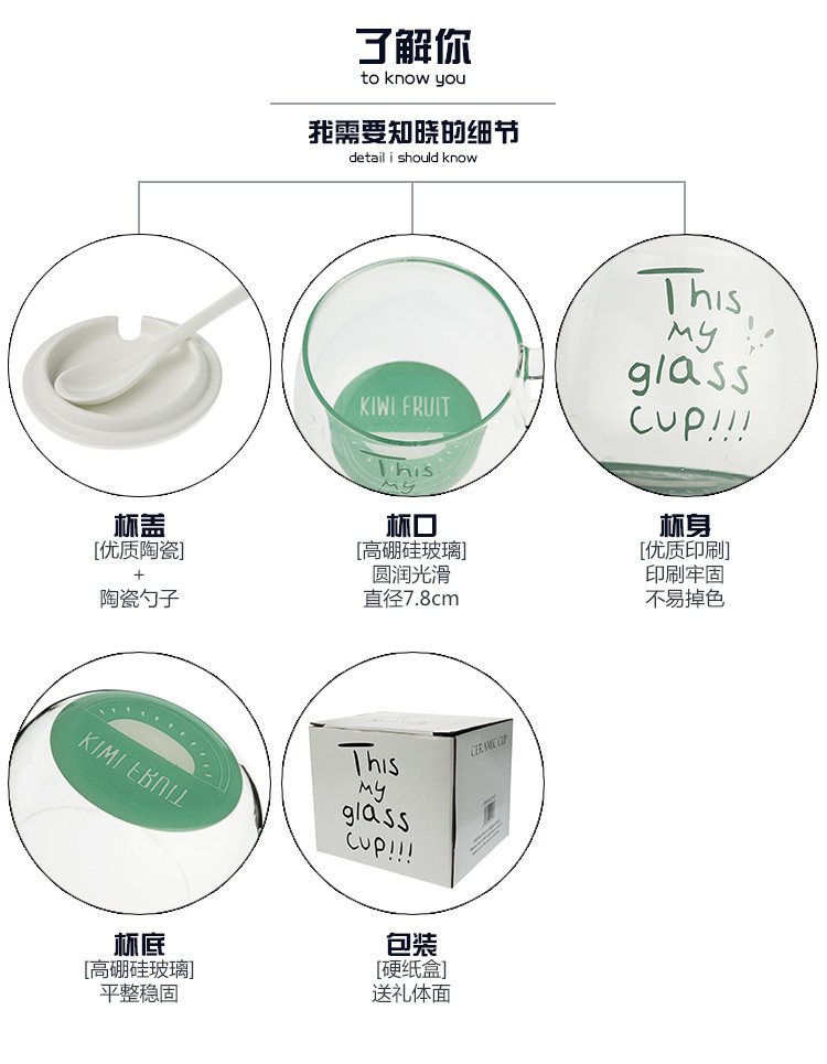 杯身为高硼硅玻璃;杯盖和勺子为优质陶瓷。