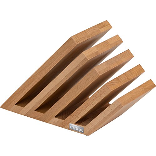 Artelegno Magnetic Knife Block Solid Beech Wood 5 Panel, Luxurious Italian Venezia Collection by Master Craftsmen Displays up to 14 High-End Knives Elegantly, Eco-friendly, Natural Finish