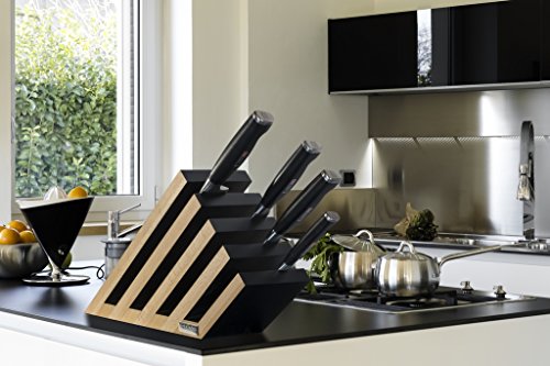 Artelegno Magnetic Knife Block Solid Beech Wood 5 Panel, Luxurious Italian Venezia Collection by Master Craftsmen Displays up to 14 High-End Knives Elegantly, Eco-friendly, Natural And Black