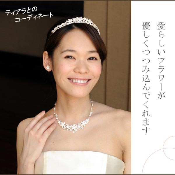 ” あなたらしいコーディネートに、きっと思い出の品として残ります。 ”パールの愛らしいウエディング・ネックレス!(アクセサリー)お花モチーフに、ホワイト・パールとビーズを軽やかにあしらった可憐でフェミニンなネックレス(シルバー)です。花嫁様の笑顔をよりいっそう可愛らしく引き立ててくれます。ウエディングドレスのデザインを選ぶことなく合わせやすく、上品で優しい印象に。【検索キーワード】ウェディングドレス/ウエディングドレス/白ドレス/マリッジ/ブライダル/ガーデンウェディング/フォトウエディング/花嫁/新婦/ブライズ/挙式/結婚式/披露宴/パーティ/パーティー/チャペル/教会/人前式/セレモニー/海外/リゾート/ホテル/式場/2次会/1.5次会/前撮り/アクセサリー/ヘアアクセ/ウエディング小物/ウェディング小物/Wedding/Bridal/ギフト/プレゼント/贈り物/花/フラワー
