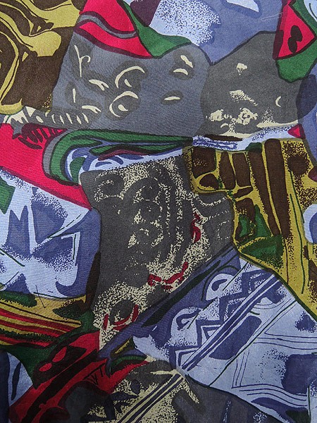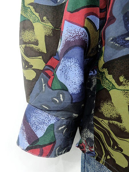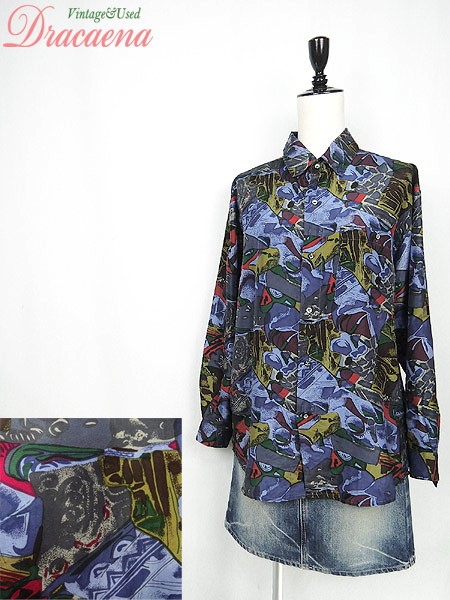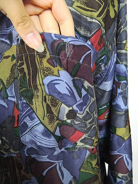 Ladies ブランド- カラー青ベース メール便不可 コンディション★★★ 素材シルク 表記サイズXL スタッフコメント素材表面全体に模様のようなキズがあります(着用には問題ない程度です)。右剣ボロ横にリペア跡あり。メンズ合わせですが、レディース用として問題ありません。 実寸サイズ 着丈 75 cm 身幅 49 cm 肩幅 46 cm 袖丈 54 cm ※ウエスト・ヒップ以外は平置き採寸