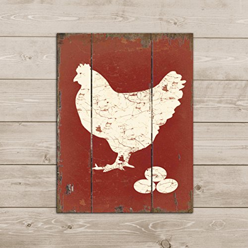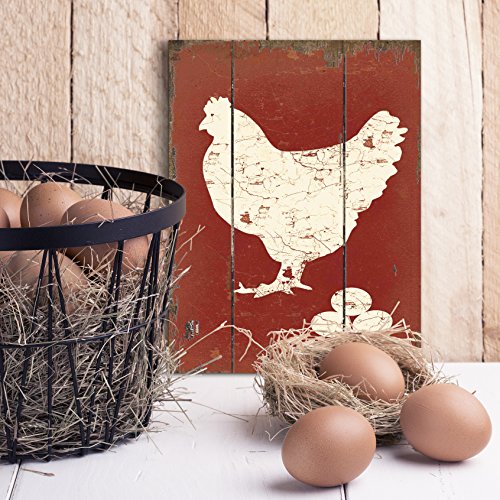 Barnyard Designs White Hen Laying Fresh Eggs Retro Vintage Wood Plaque Bar Sign Country Home Decor 15.75" x 11.75"