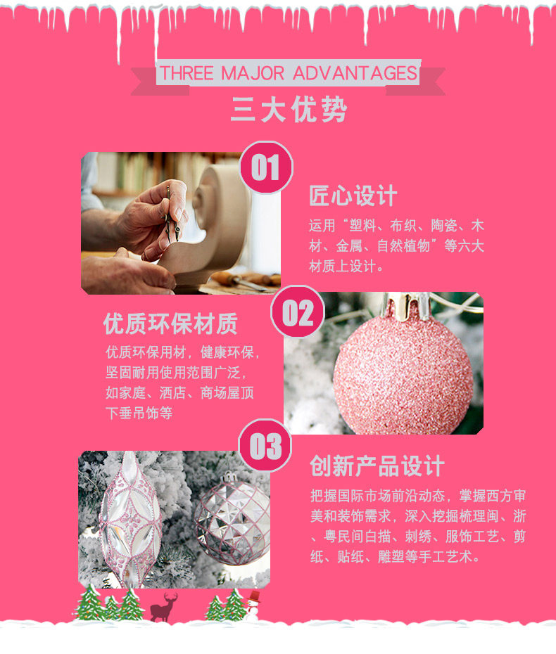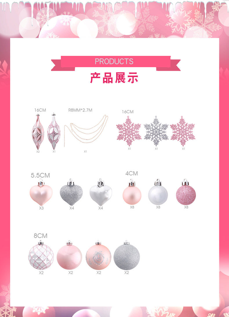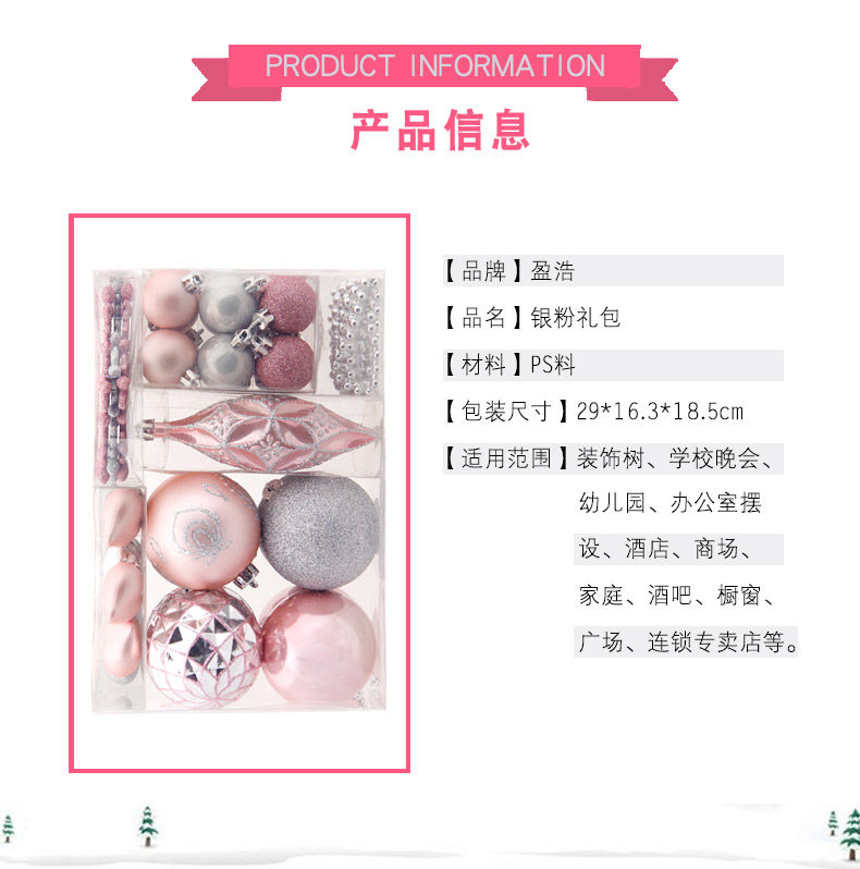 盈浩 圣诞树装饰品50个银粉异型挂饰套餐礼包圣诞球礼品彩绘吊件