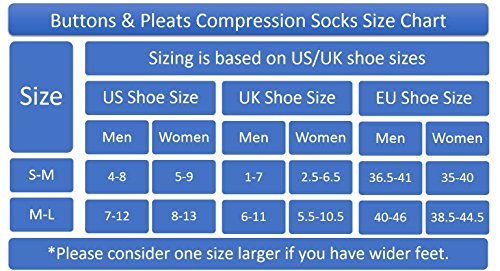 Buttons & Pleats Compression Socks Womens & Mens - Pair of Medical Grade 20-30 mmHg Graduated Sock Support Stockings - Ideal for Running & Athletic Wear, Pregnancy/Maternity, Flight & Travel