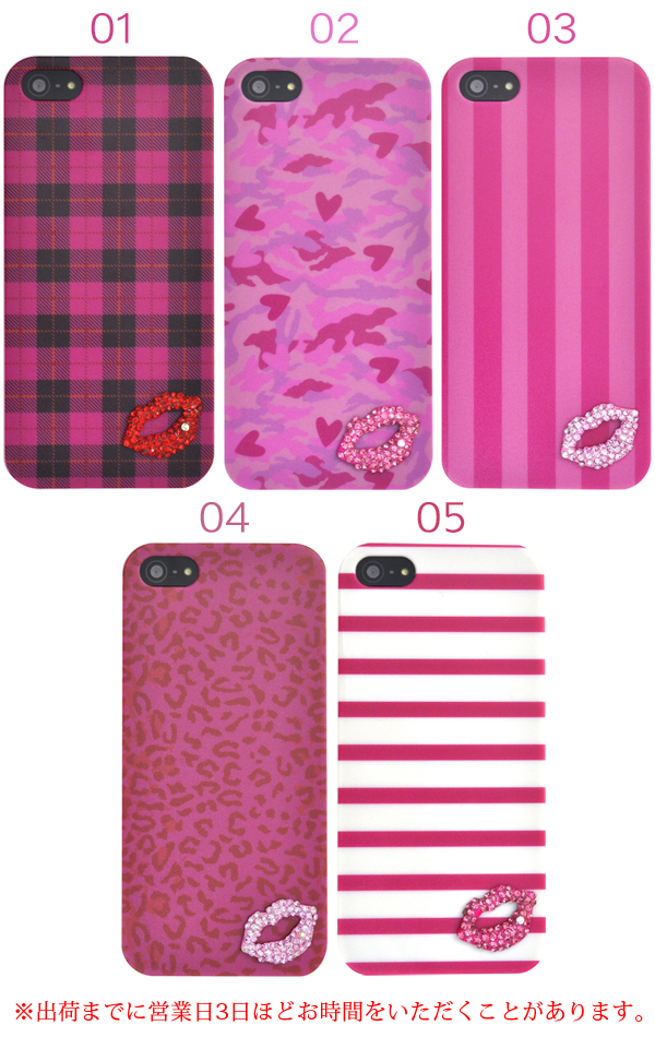 ピンクをベースにしたケースのパターンの上にラインストーンをあしらったリップが アクセントになってケースの魅力を引き立たせてくれます。 衝撃やキズなどからiPhone5、iPhone5s/iPhone SEを守るのはもちろん、 カメラ、イヤホンや各種ボタンなどをケースに入れたまま操作可能です。 種類はチェック、迷彩、ストライプ、ヒョウ柄、ボーダーの5種類からお選びいただけます。 ※iPhone5、iPhone5s/iPhone SEは付属しません。 ※ライセンス商品ではありません。 ※衝撃を与えると、デコパーツが取れる場合があります。 |