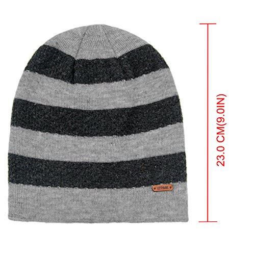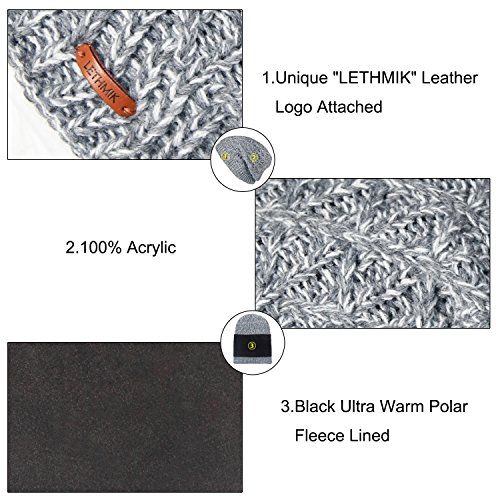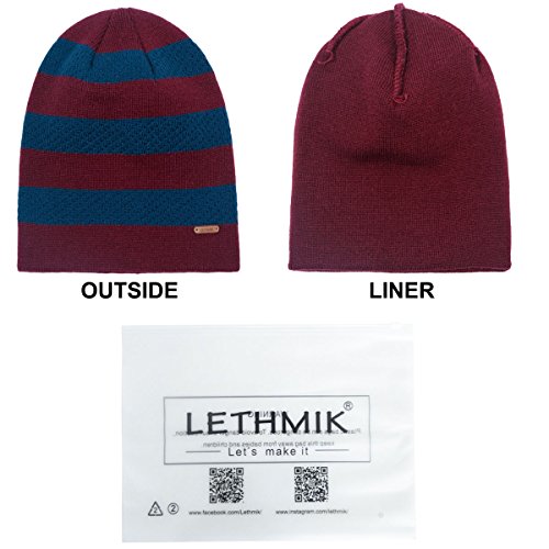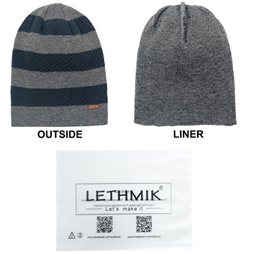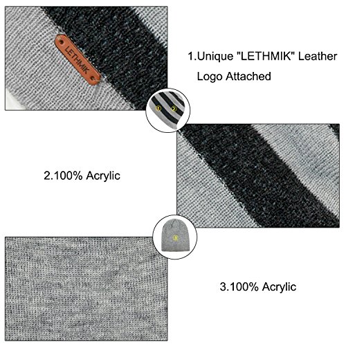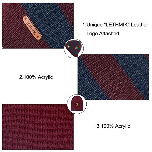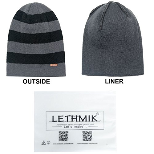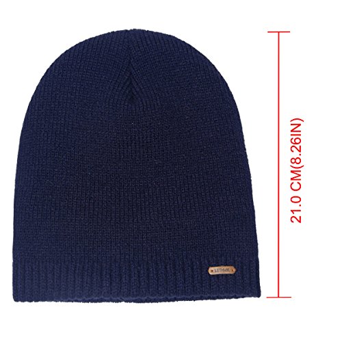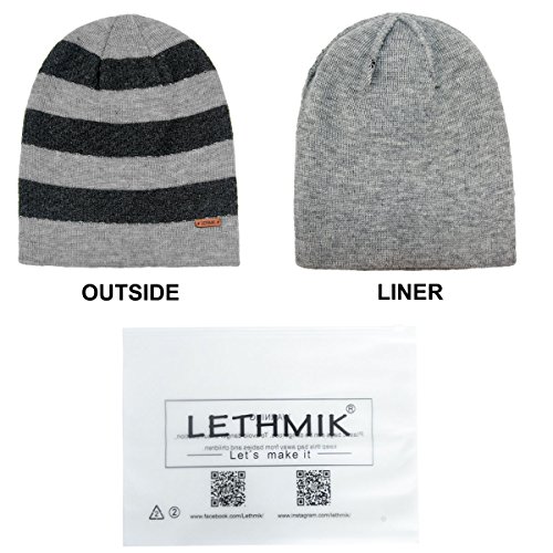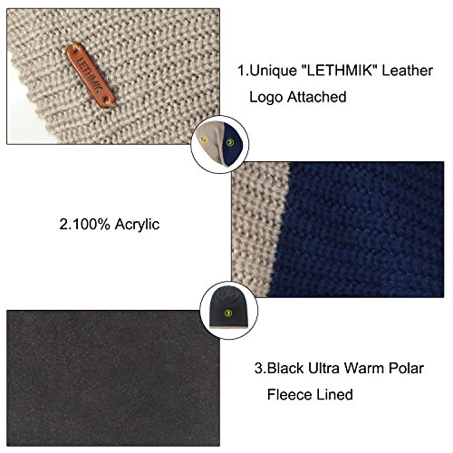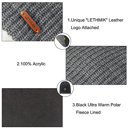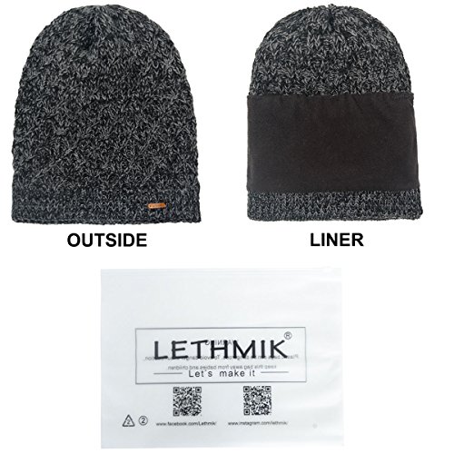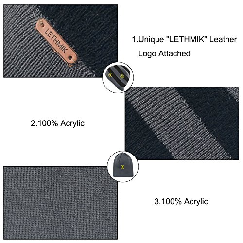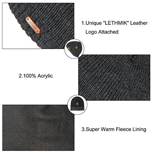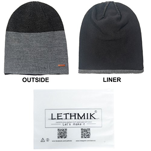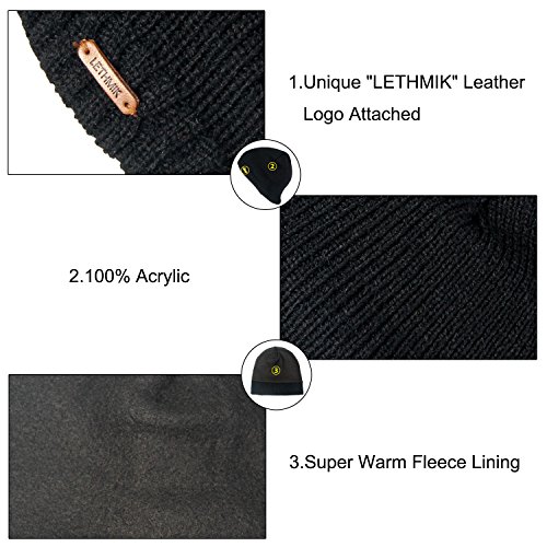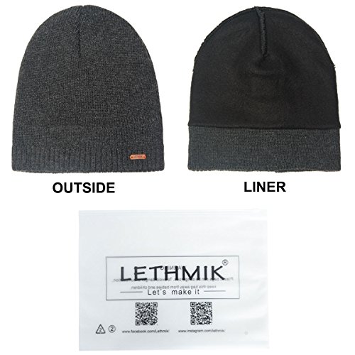 Binding : Apparel Product Description LETHMIK hats collection. LETHMIK Fleece Lined Beanie Hat Mens Winter Solid Color Warm Knit Ski Skull Cap; One Size Fits MOST, Skull and Cosy Fit. Comfortable and high quality hat material, provides Comfort, Warmth and excellent elasticity, Stretches to fit most sizes, You can easily get a custom fit according to your head size. This hat is made of 100% Soft Acrylic and Comfortable Polyester. Solid Color knitted, Build a simple and fashion style, Super Warm Fleece Lined and "LETHMIK" leather logo decoration, increases personality and identification. A wonderful hat for wearing while skiing, snowboarding, skating, sledding, snowshoeing, camping, hiking or any outdoor sports and activities. We make this hat the perfect balance between soft, warm, lightweight and stylish. Pair off with your favorite Outfit. Product Care Instructions:Do not wash by hot water; Do not chlorine bleaching; Hang dry in shade; Do not iron; Hand Wash or Spot clean recommended! Please Try Not to Machine Wash or Brush Wash (In order to avoid Pilling). Please check genuine authentic item tag to avoid counterfeit products.Counterfeiters are capable of copying the appearance of lethmik items but there're no "LETHMIK" tags and our packing. Our customer service Email address is: customerservice@lethmik.com ; You can feel free to contact us if you would have any questions, and we will try our best to bring you with the best services. 0