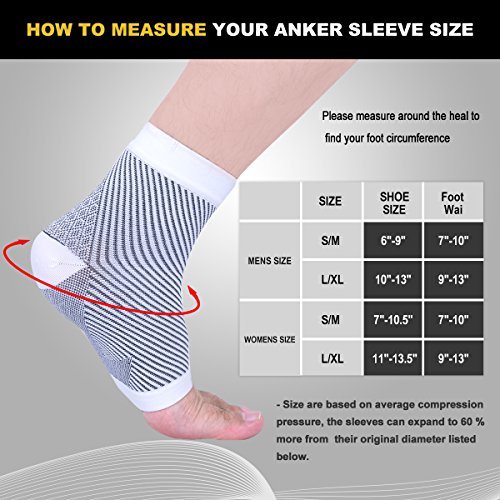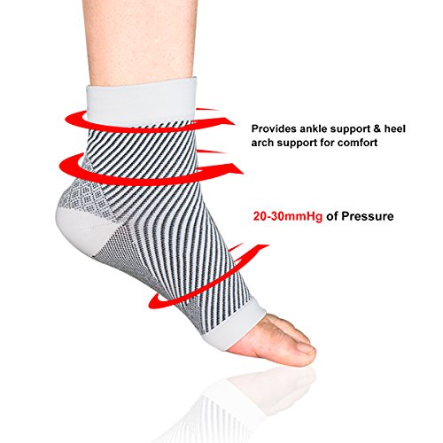 - Alleviate Foot Pain – Perfect Plantar Fasciitis foot compression sleeve provide ankle support & heel arch support for those with injuries and other chronic conditions to maximum boost to your blood circulation,oxygen circulation,reduce lactic acid build up and aids muscle recovery in ankle and feet.Relieving chronic pain