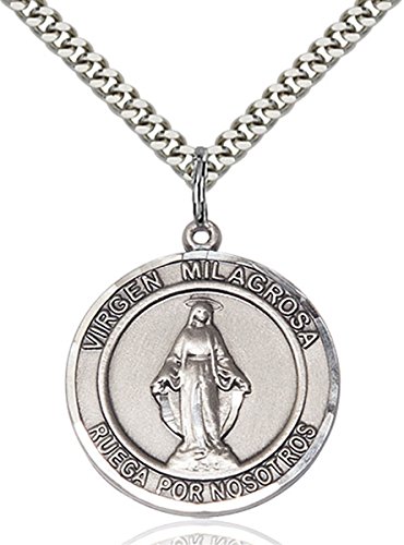-. Feature : Medal - Sterling Silver - 1 Inch (H) x 5/8 Inch (W) / Chain - Stainless Steel Heavy Curb - 24 Inch / Manufactured in the USA / Gift Boxed