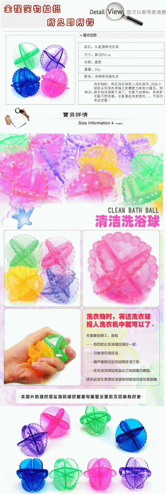 Bola unik ini dirancang untuk membantu Anda membersihkan baju selama proses laundry di dalam mesin cuci. Cara pemakaiannya cukup masukkan beberapa bola ke dalam mesin cuci bersama pakaian. Selama proses pencucian, bola ini akan membantu "menggosok" pakaian Anda sehingga lebih bersih. Di samping itu, bola ini akan membuka ruang lebih besar di antara pakaian sehingga proses pengeringan di dalam mesin cuci berjalan lebih cepat. Bahan bola dari sejenis karet yang tidak akan merusak pakaian Anda.