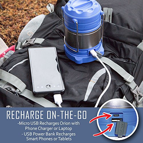 The Orion Ultimate Survival LED Lantern and Power Bank is the most versatile survival tool available and features both a stunningly bright LED Lantern and built in Power BankMULTI POWER TECHNOLOGY WITH ALL BATTERIES INCLUDEDThe first lantern of it's type to use any combination of:- 1 Lithium 18650 Battery- 2 Lithium 18650 Batteries- 3 AA Batteries- Or all of the above! FOUR INDEPENDENT LIGHTING MODES The multi-function button allows you to easily switch between all lighting modes:- Ultra Bright- Soft White- Night Vision Red- Emergency Flashing RedELEGANT BRUSHED METAL DESIGN COMBINED WITH VERSATILITY AND POWER Powering on the Orion is incredibly easy by simply opening and expanding the lantern to it's full height, but it also collapses down to 5 inches when closed making it the perfect lantern to throw in your backpack, satchel, or glove compartment BUILT IN 5200mAh POWER BANK Not only can the Orion provide all of the light you need for any type of emergency, but it can also be used to power smart phones, tablets, and any USB powered device with the micro-USB cable that's also included with the Orion 100% SATISFACTION GUARANTEE AND 5 YEAR WARRANTY Owned and operated in the heart of the USA, we provide the best customer support in the industry and are proud to offer our "No Questions Asked Money Back Guarantee" by Intervine. EVERYTHING YOU NEED IS INCLUDED! 1 X Orion Power Bank & Camping Lantern 3 X High Capacity AA Alkaline Batteries 2 X 18650 Rechargeable Lithium Ion Batteries 1 X USB Recharging Cable 1 X Spring Loaded Hanging Hook Order yours today and your Orion will immediately be shipped and on its way to you! Questions? As outdoor enthusiasts living in the USA, we love using our own products and talking to our loyal customers whenever we can!Feature