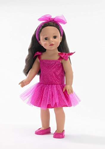 -. Feature : Plus she is wearing a matching headband and shoes. / She is ready for hours of playtime fun. / 18" doll with brown hair and brown eyes.