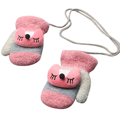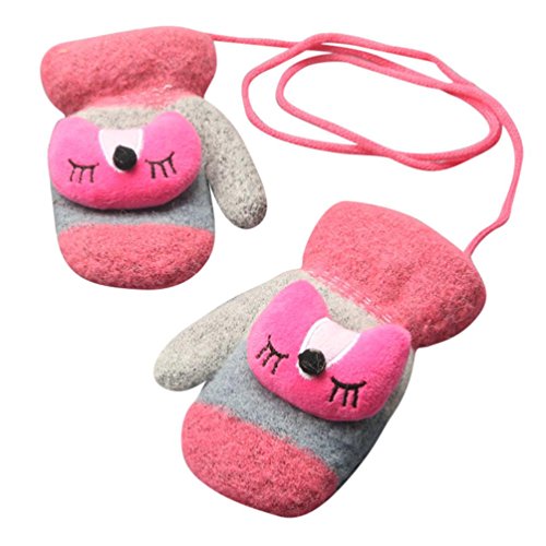 (KingWo)/Accessories/Cold Weather Accessories/DIRECT FROM USA/KingWo New 1 Pair Cute Little Fox Thicken Winter Warm Gloves With Rope For Infant Baby Girls Boys