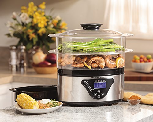 Make mealtime more exciting and nutritious with the Hamilton Beach Digital Steamer. Place the transparent bowls of your choice of vegetables, seafood, or chicken atop the base and set the cooking timer. When done, the steamer beeps and switches to warm.