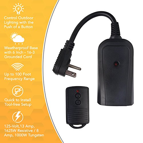- 100-FT FREQUENCY RANGE: this outlet remote control converter kit offers hassle-free control and lets you conveniently adjust your outdoor security lights, patio lights or holiday decor without having you step out of the house or car