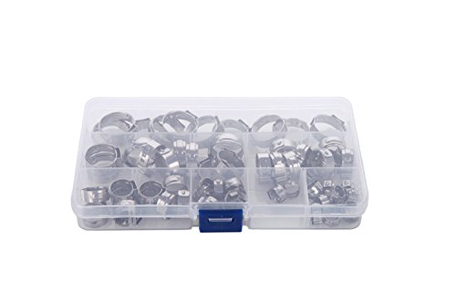 Eowpower 70Pcs 7-21mm Stainless Steel 304 Single Ear Hose Clamps Assortment Kit