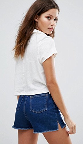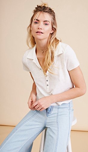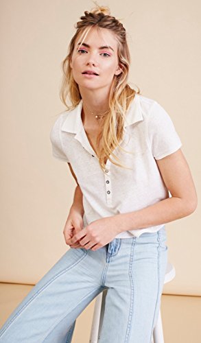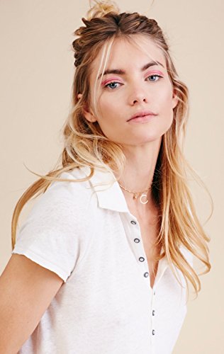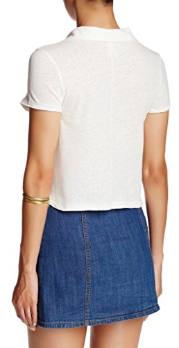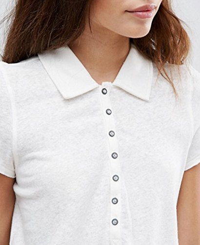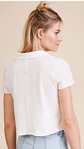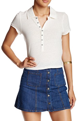 Product DescriptionUnfinished edges and washed fabric make shabby chic of a cropped polo, spread collar, short sleeves, 7 button placket, side vents.0