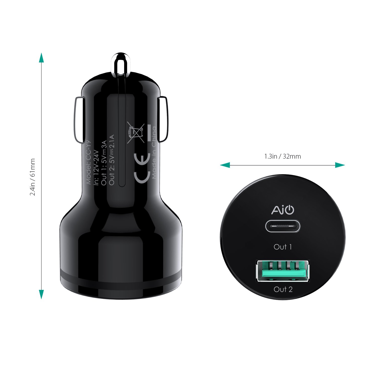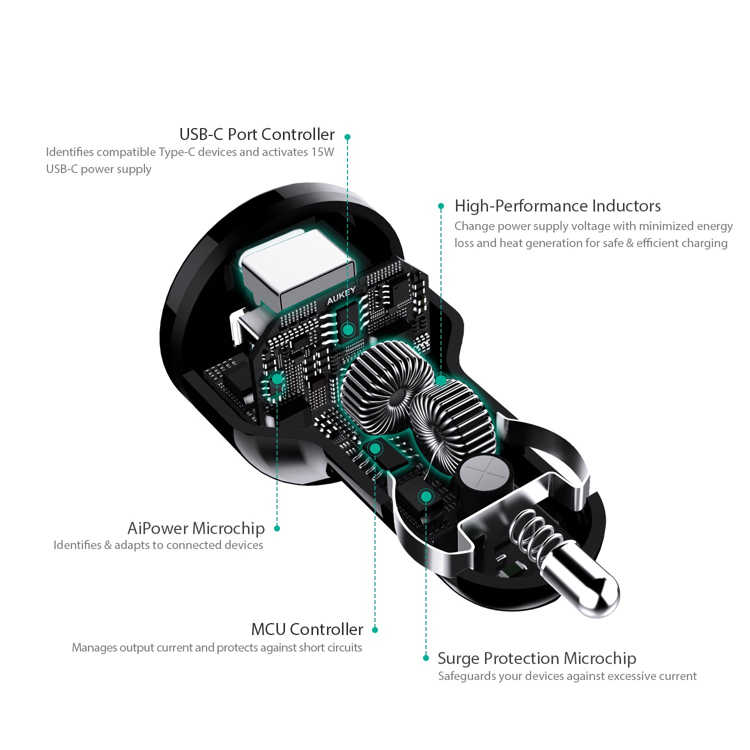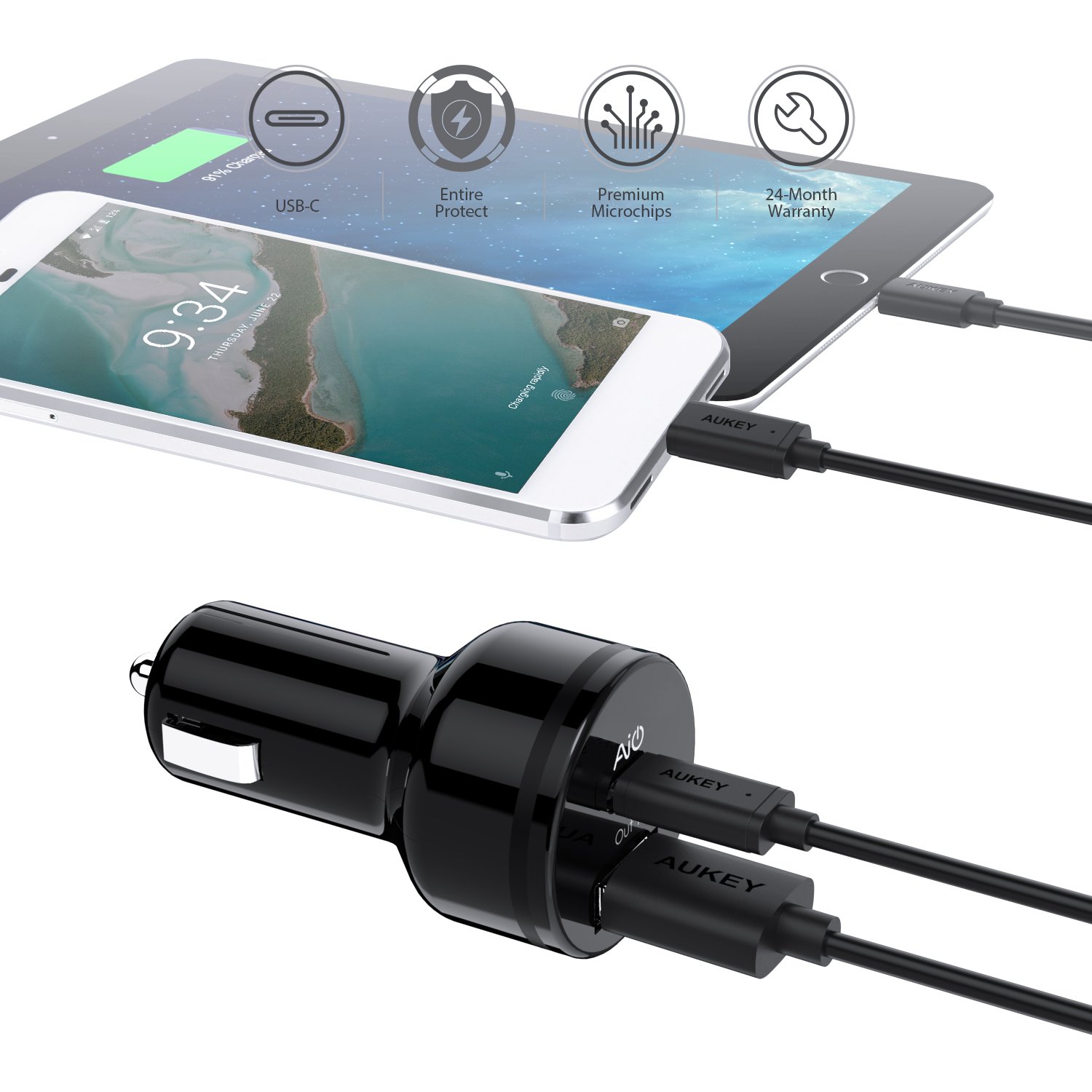 The sophisticated mat black AUKEY CC - Y 9 blends smoothly into the car.