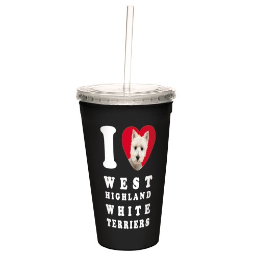 Tree-Free Greetings CC35140 I Heart West Highland White Terriers Artful Traveler Double-Walled Cool Cup with Reusable Straw, 16-Ounce