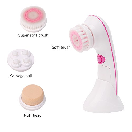 4 in 1 Waterproof Electric Facial and Body Cleansing Brush Set with 4 Brush Heads for Removing Blackhead, Exfoliating and Massaging